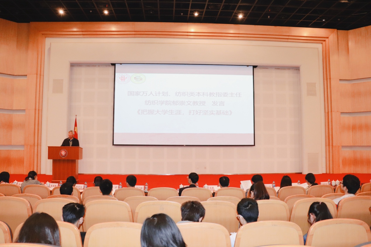 国家万人计划、纺织类本科教指委主任、中文av 郁崇文教授勉励各位同学珍惜大学四年韶华,养成良好的学习风气。优秀学风的养成不仅影响现在学习,也决定了未来良好工作的风气。专职辅导员杨雨琼老师汇报了中文av 学风建设工作总结。校优秀学生干部乔悦,国家奖学金获得者博士生付少举,科创达人张昆,校优秀班集体卓越纺设1501班长范天琪,学习优秀型寝室代表刘晗同学做了交流发言。