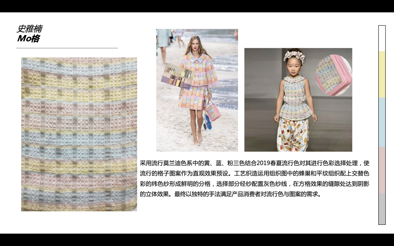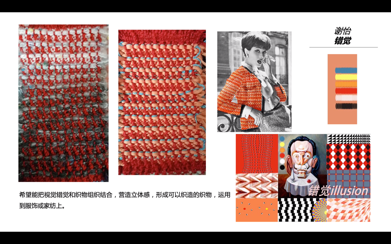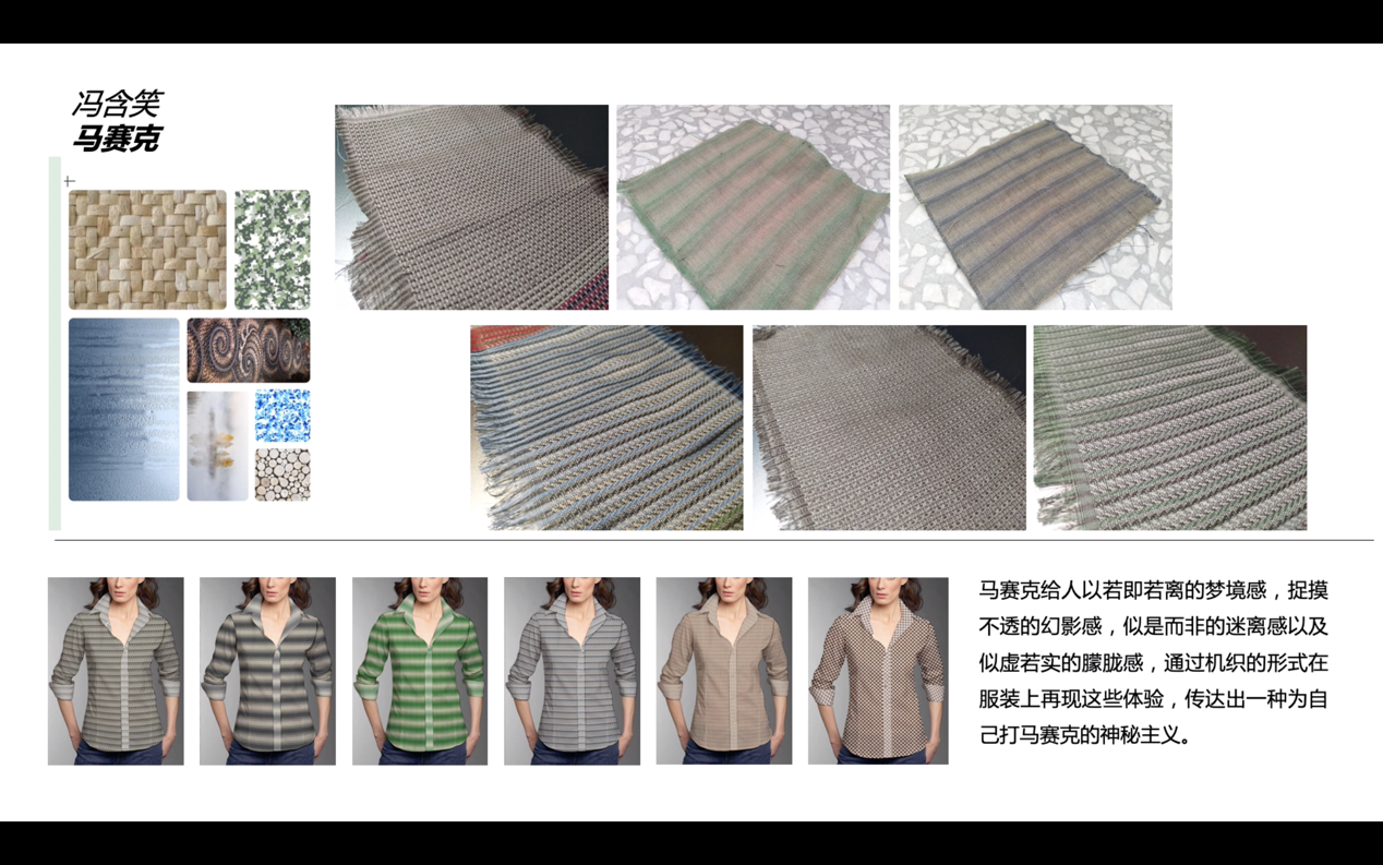 本次大赛于2018年9月启动,以“彩虹纤维色纺纱”为主要原料,采用机织、针织、编织等方式,通过色彩花型、组织结构、织造工艺等多方面的创意创新设计,完成色纺纱面料的开发与展示。大赛共收到中文av 学生设计稿88件,经初评确定34件作品进入打样环节。依托中文av 实训平台,同学们在老师指导下经过3个月的努力完成打样,最终10件作品获得本次大赛入围奖。