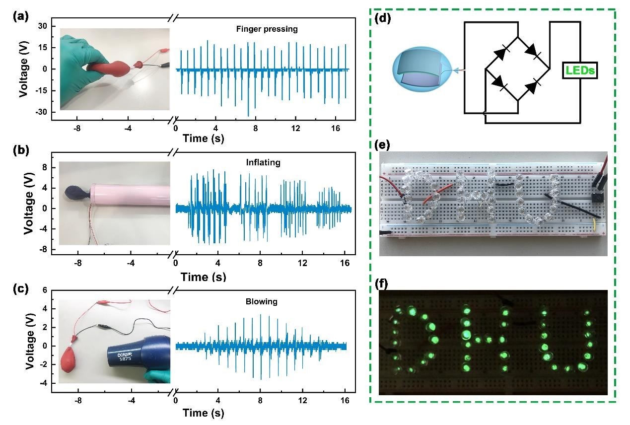 (空气间隔-密封结构的摩擦纳米发电机可收集多种形式机械能应用演示)