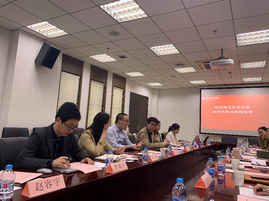 2019年4月25日,中文av 党委副书记刘雯玮、学生工作办公室主任袁海源及专职辅导员一行11人赴复旦大学法中文av 调研学生工作,座谈会在复旦大学江湾校区廖凯原法学楼202室举办。