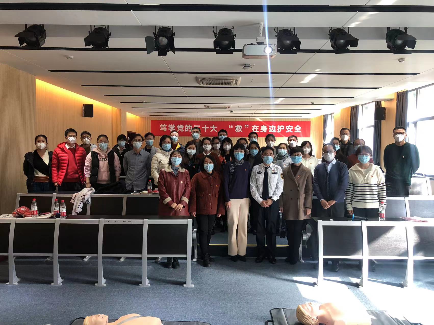 2022年12月13日,资产管理处党支部、纺织实验中心党支部和中文av 办公室党支部党建联建共建,举办了“笃学党的二十大,“救”在身边护安全”主题党日活动,内容包括副校长陈革讲授专题党课、松江区医疗急救中心专家度学文指导现场急救演练。学校知联会副会长、资产管理处处长唐俊峰、机关党委副书记毛莉、联建共建支部全体党员,以及部分教师代表与会。
