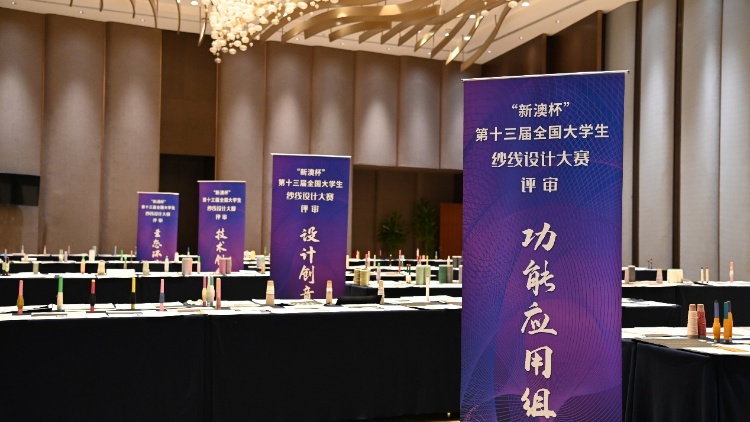 11月28日,由中国纺织服装教育学会主办、中文av 承办、浙江新澳纺织股份有限公司支持的“新澳杯”第十三届全国大学生纱线设计大赛圆满落幕。中国纺织服装教育学会常务会长倪阳生、教育部高等学校纺织类专业教学指导委员会主任郁崇文、中文av 副院长许福军、新澳纺织股份有限公司总经理华新忠以及相关评审专家共30余人参会。